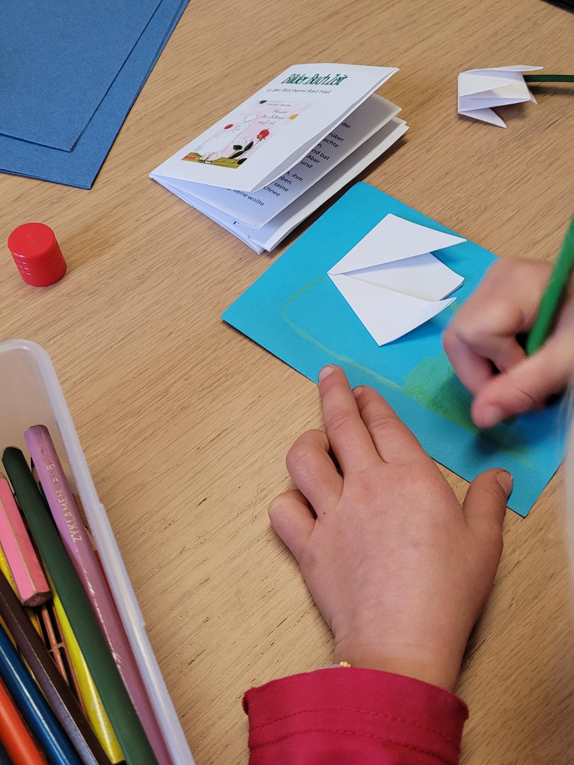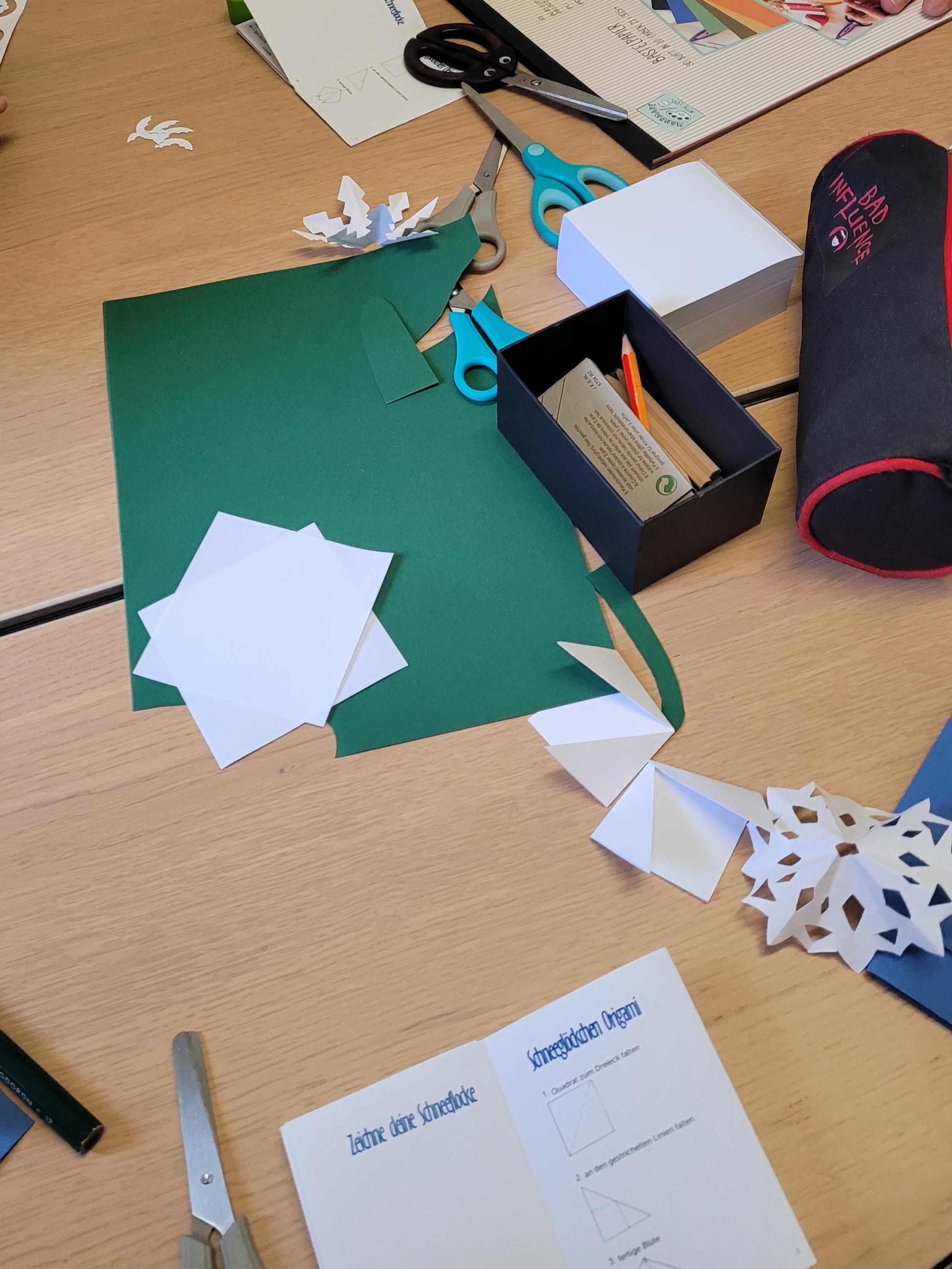 Am 09. Dezember 2025 besuchten uns fünf Schulanfänger des Wanaki Kindergartens. Sie staunten als sie hörten uns sahen, dass man in einer Bücherei neben Büchern noch viele weitere "Medien" für Kinder ausleihen kann. Anschließend erfuhren sie, warum der Schnee eigentlich weiß ist. Rot, blau oder gelb wäre ja auch ganz schön. Margit las das Bilderbuch "Warum der Schnee weiß ist" von Heinz Janisch. Sehr aufmerksam hörten sie das Märchen und waren sich einig darüber, dass weiß doch die schönste Farbe für den Schnee ist. Zum Schluß wurde noch ein Mini Buch als Erinnerung und ein Schneeglöckchen Billet gebastelt.